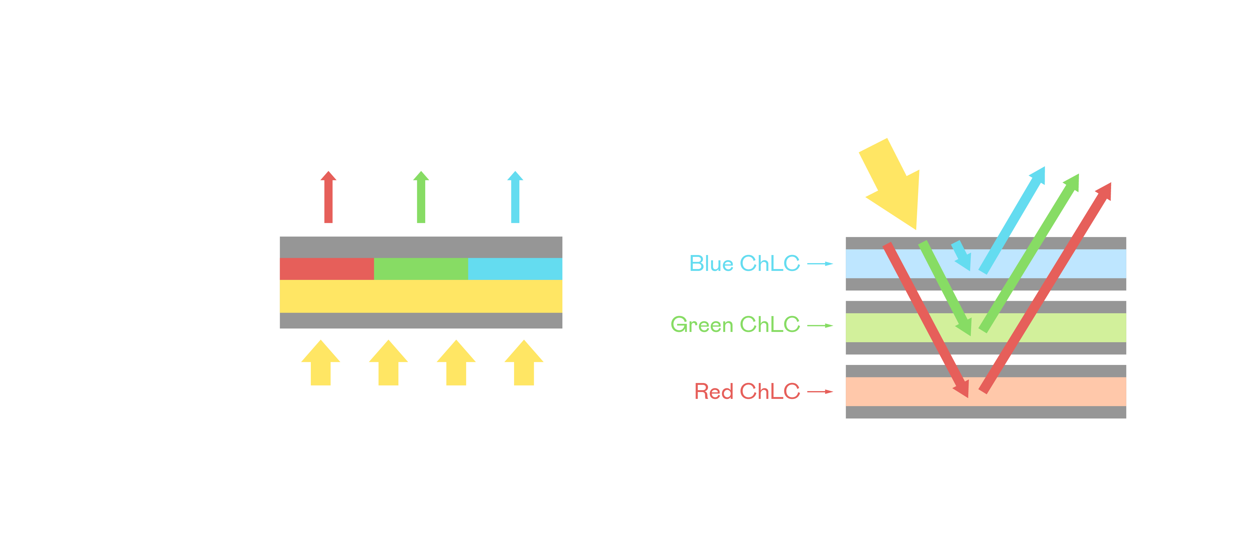 k1体育胆固醇液晶显示器是由红、绿、蓝三层胆固醇液晶面板堆叠而成,并采用无彩色滤光片设计,减少环境光在反射过程中的损耗。